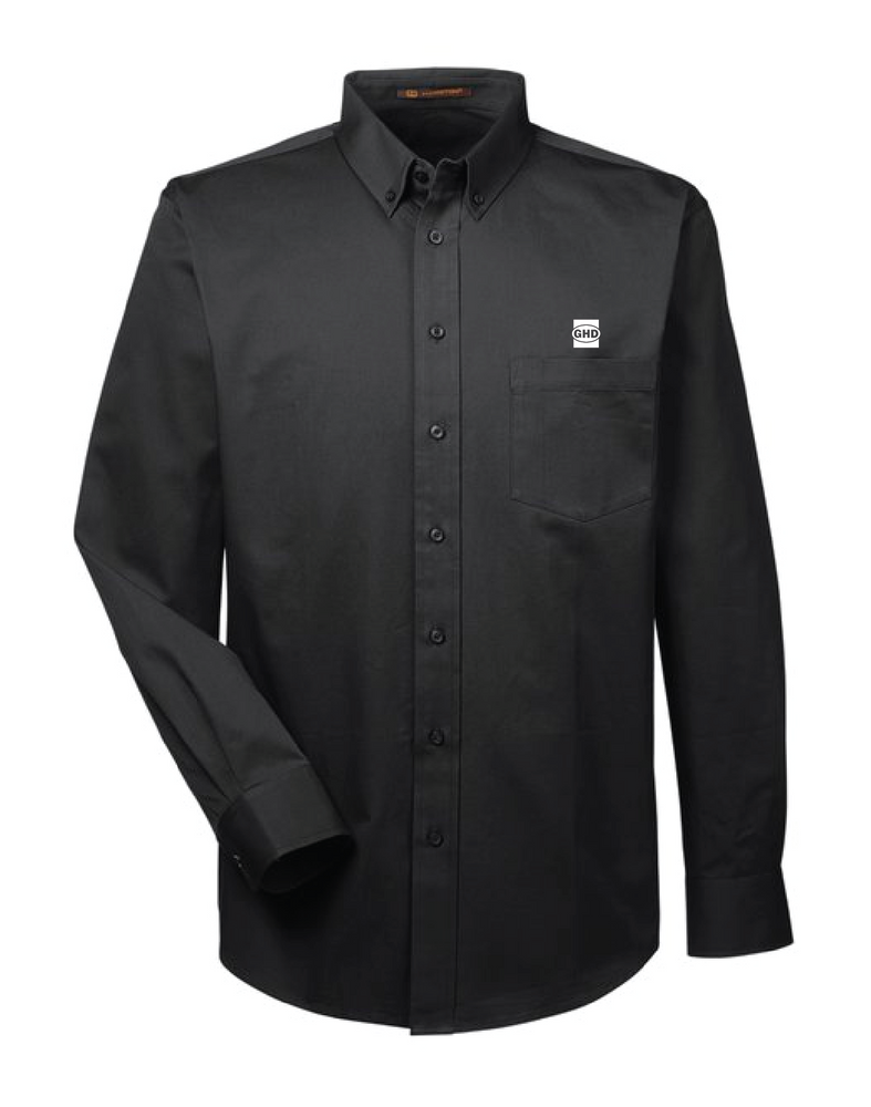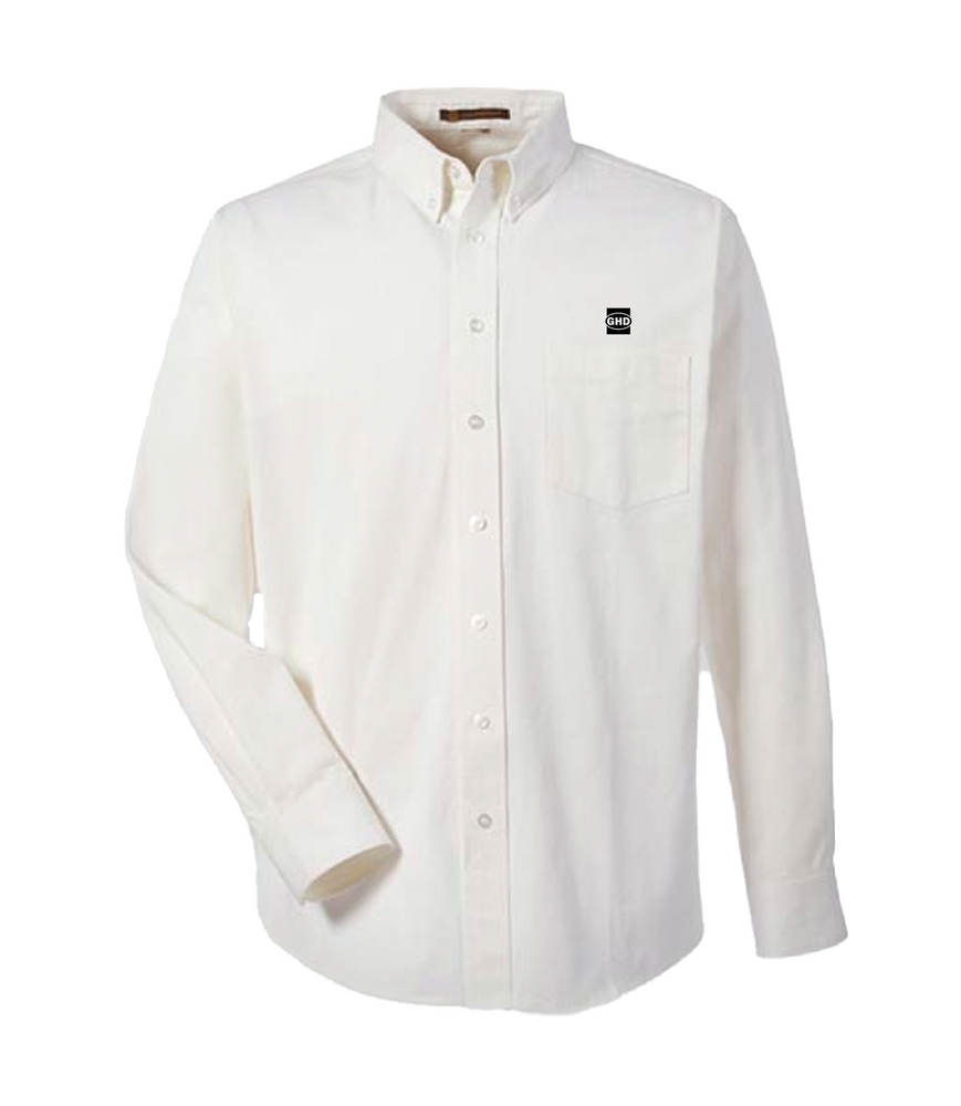 Includes embroidered GHD logo on left chest of twill shirt.
